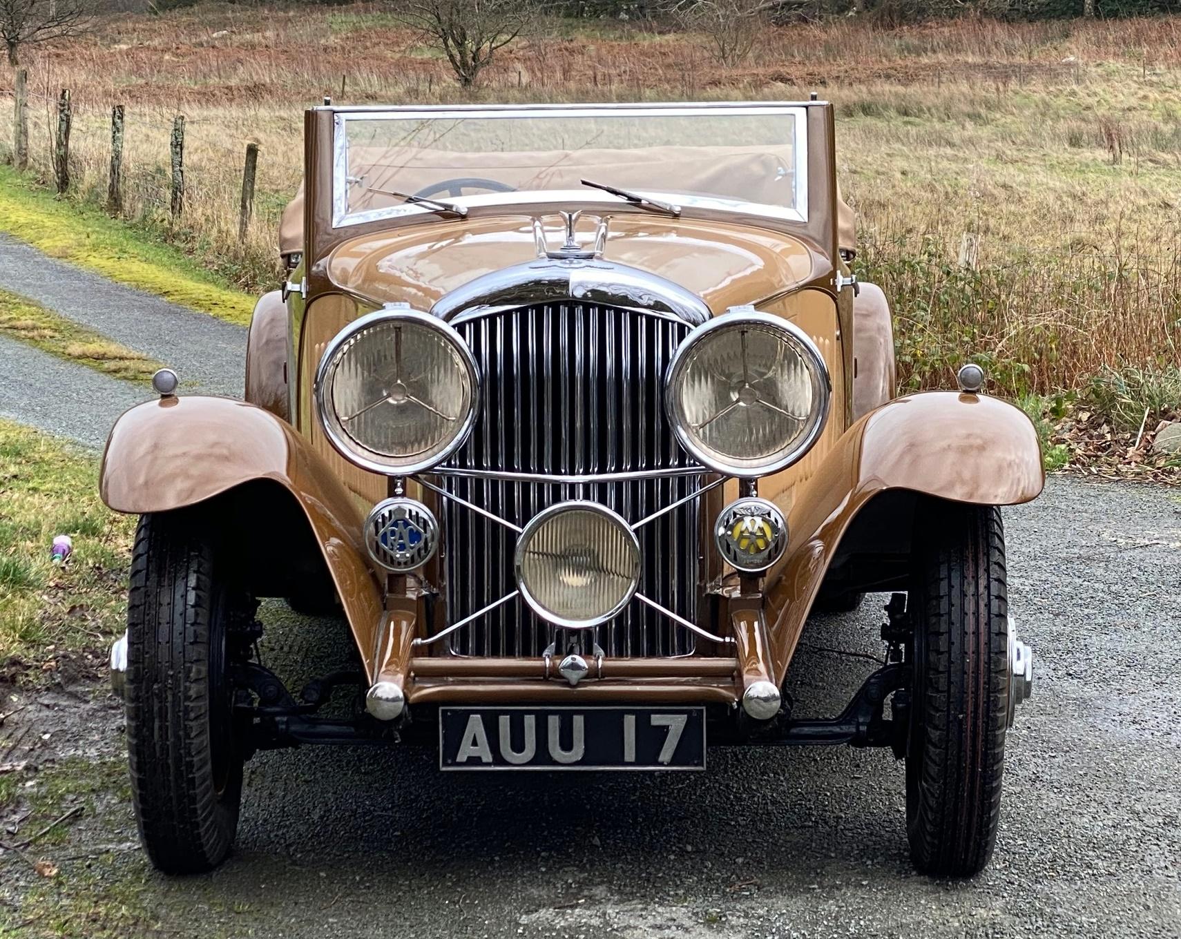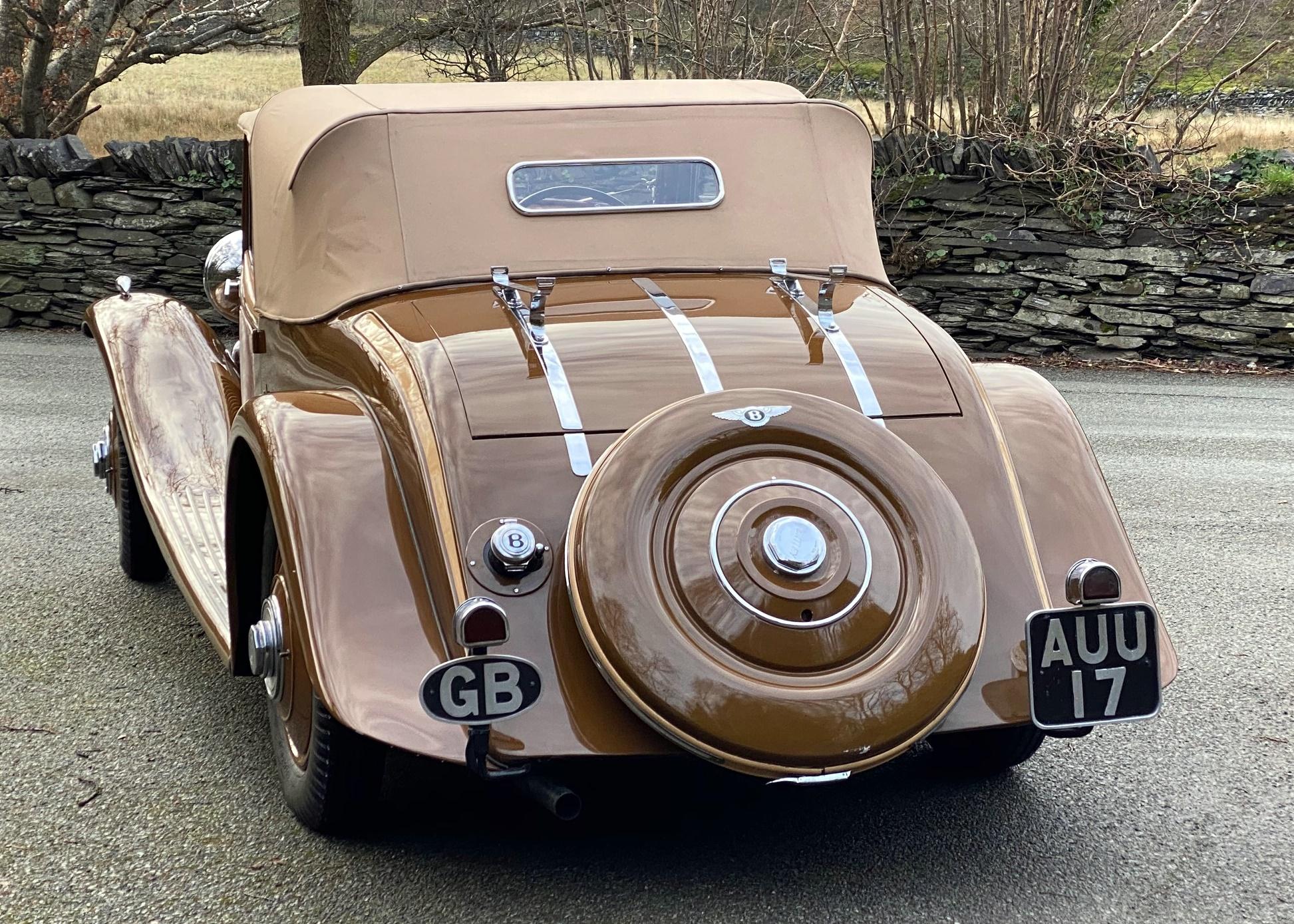 A very striking Derby Bentley which incorporates various unusual and very appealing design features. Sporty in appearance, sharp and lovely in condition and running very well. One of the very first Derby Bentleys built, originally bodied by Park Ward, the current Barker body was built for a slightly later 3½ Litre in 1935, but transferred to this car in the 1950s. The car features very sleek wing design, shallow windscreen, some very attractive body mouldings and swage lines to the scuttle and bonnet (which are also louvred), the rear quarters and the doors, too have sweeping, curved lines, enhanced by colour division. Early photos of the body when mounted on B178DG, although black & white, suggest a very similar colour scheme to that still on the car. These photos, together with shots of various documentation, an old logbook, etc, can be seen on the 'More Photos' page. The paintwork, chrome plating, upholstery, woodwork and cosmetics generally are all excellent, and the fitment of a full set of 'Ace' wheel discs and a 'clam shell' spare wheel cover, correct P100 headlights,the facility for mounting luggage on the lid of the already quite spacious boot, all add to the car's practicality. Excellent, probably unique and a very rare opportunity to acquire such a special specimen. The car has a recent aluminium cylinder head and we have just fitted five new tyres and heavy duty tubes. Serviced, prepared and offered newly MoT tested.