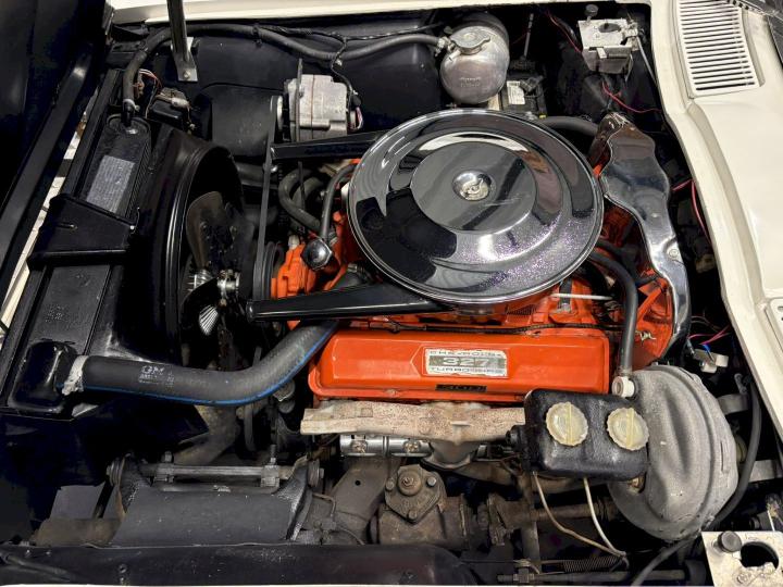 The 1965 model year marked a turning point in Corvette history. With its sharp, aggressive lines and distinctive hidden headlights, the C2 Corvette—often referred to as the “Mid-Year Corvette”—set a new benchmark for American sports cars. This particular example stands out in a dazzling Ermine White exterior finish, beautifully contrasted by a sleek black leather interior that still exudes sophistication and charm nearly 60 years later.