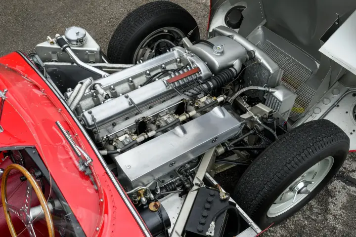 The British company won the French classic five times that decade, twice with its C-type, and then three times in a row with its fabulous D-type. Designed by Jaguar’s brilliant aerodynamicist Malcolm Sayer and introduced in 1954, the D-type carried over its predecessor’s ground-breaking disc brakes, but its construction was all new.