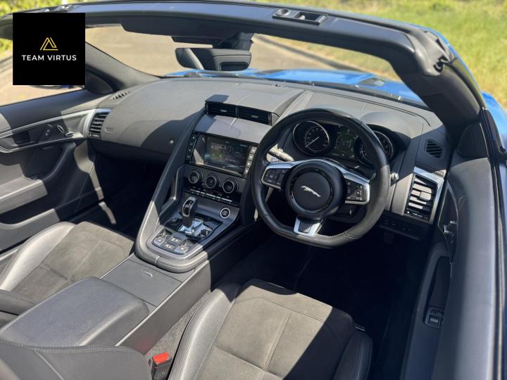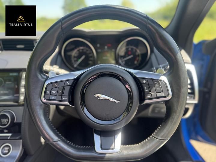 Here at Team Virtus, we are proud to offer this stunning Jaguar F-Type 3.0 V6 R-Dynamic Convertible, a true masterpiece of engineering and design that perfectly blends performance with luxury. With a powerful 3.0-litre engine delivering an exhilarating 375 bhp, this beauty accelerates from 0 to 60 mph in just 4.8 seconds, reaching a top speed of 171 mph. Finished in a striking Ultra Blue with contrasting Gloss Black grills, bumpers and vents, this 2018 model with only 53,000 miles on the clock is sure to turn heads wherever you go. With over £6,000 of optional extras, this vehicle is not just a car; it’s an experience.