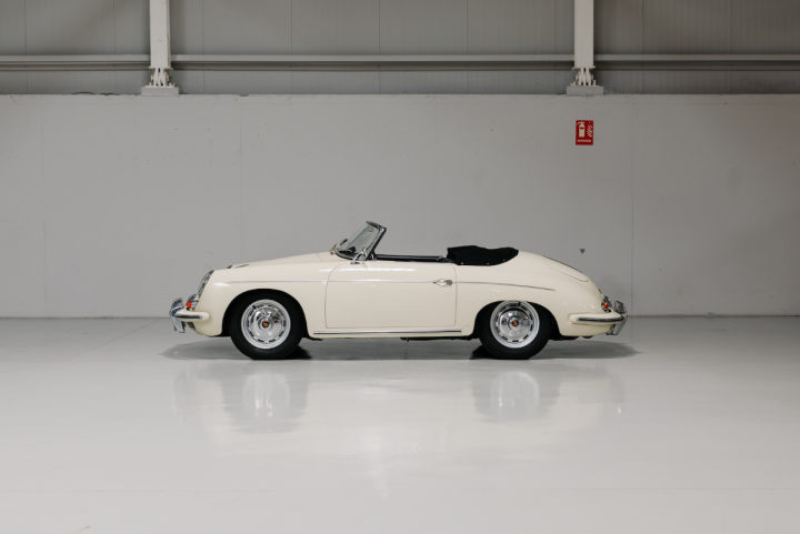 The 356 Roadster was conceived as the successor of the Speedster. The main differences with the more common, less rare, Cabriolet 356 B variant were the removable windshield frame, the Speedster-like minimalist dashboard, the lighter and less bulky soft-top frame, the Roadster offered a purer, sport-oriented character than the contemporary Cabriolet. Produced between 1959 and 1961 and with a total run of 2.653 examples, the Roadster is revered as one of the most interesting 356 models, specially in its “Super 90” variant.