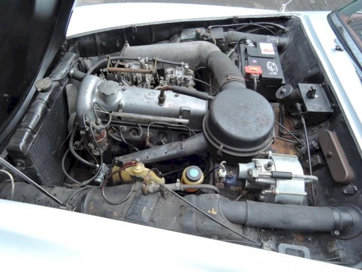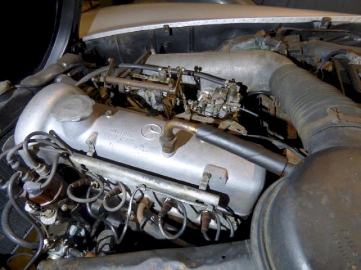 Betreft een redelijk exemplaar deze late versie 190SL, een auto met een leuk uiterlijk, het lakwerk van origine donkergrijs 190G is in het verleden gewijzigd in de kleur zilver metallic 180G en is in een redelijk conditie zo ook het chroomwerk is netjes en past goed, de voorruit omranding mag vroeg of laat verchroomd worden, het rood leder interieur met passend tapijt is in een goede staat, softtop is in een goede conditie, qua body optisch goed echter o.a de vloerbodem-delen hebben aandacht nodig, nieuwe bodem delen zijn reeds aanwezig en gaan mee met de koop, technisch en motorisch loopt en rijdt deze 190SL cabriolet naar behoren, de kwetsbare Solex carburateurs zijn in het verleden vervangen in Mikuni met behoud van luchtfilter en aanzuigbuis, het motor onder blok is in het verleden vervangen door de juiste ruil motor af fabriek, het bovengedeelte met name de cilinderkop is nog origineel.
